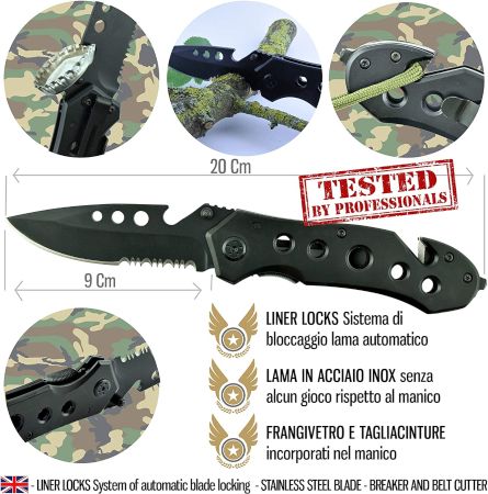 - 24 funciones distribuidas en 11 herramientas de alta calidad recomendadas por expertos en supervivencia, adecuadas para sortear cualquier inconveniente.