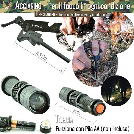 Con el kit de supervivencia STOOKKER de tercera generación y su conjunto de herramientas que incluyen paracord, pedernal y navaja, podrás salir airoso casi de cualquier situación adversa en el terreno.